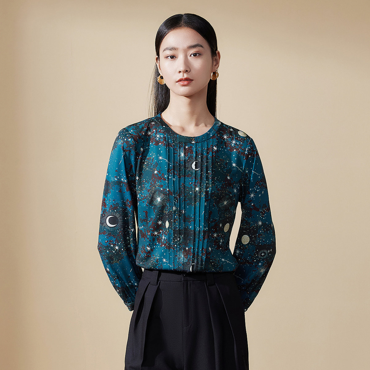 【商场同款】FINITY菲妮迪26年新款雪纺衫简约别致星月印花上衣女