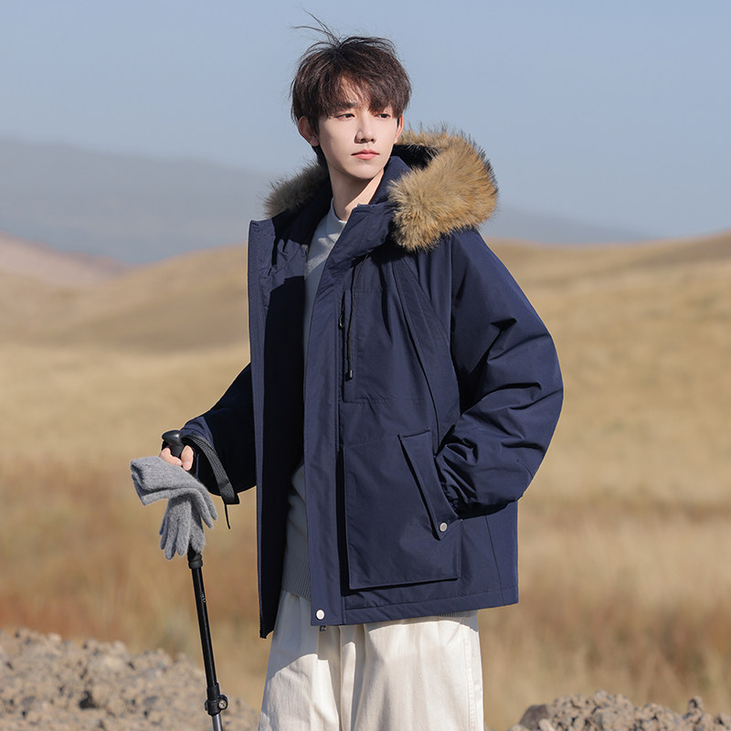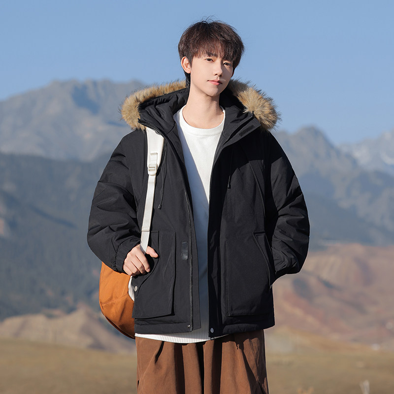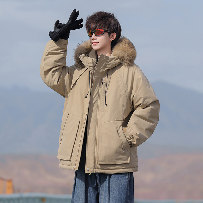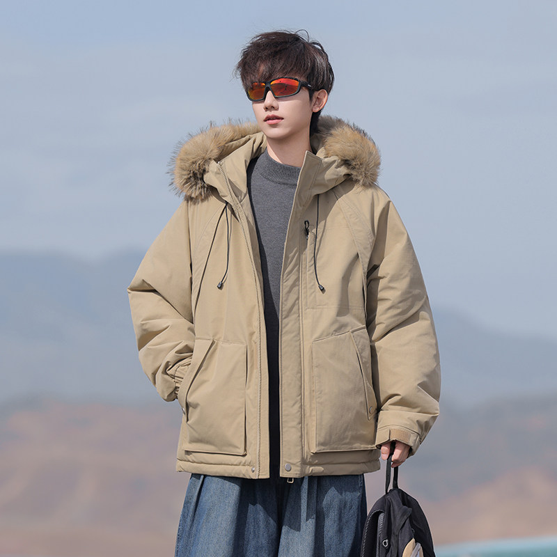 回力防风工装毛领派克服棉服男冬季2025新款连帽加厚保暖棉衣外套