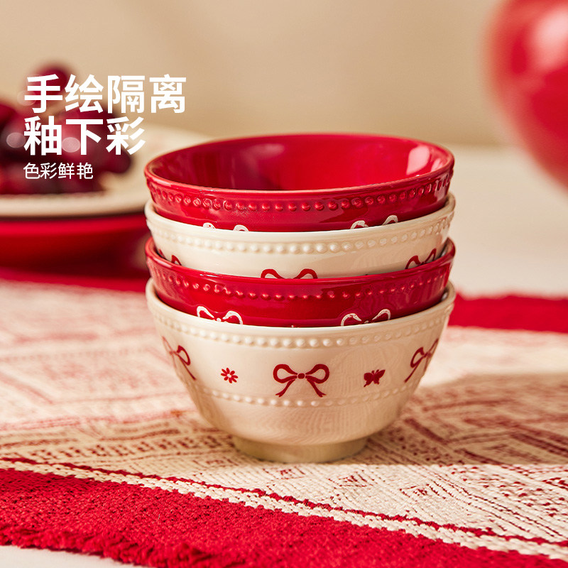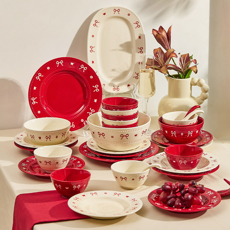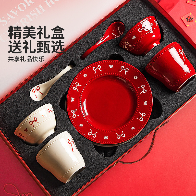 高档碗碟餐具陶瓷新婚礼物送新娘红色碗盘筷套装乔迁新居结婚礼盒