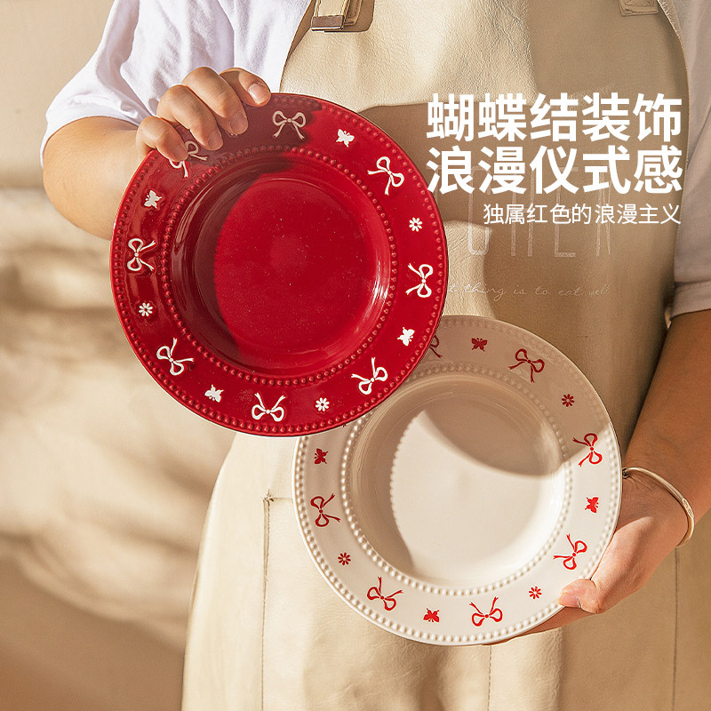 摩登主妇釉下彩新婚结婚订婚礼物浮雕餐具家用2025新款高颜值套装