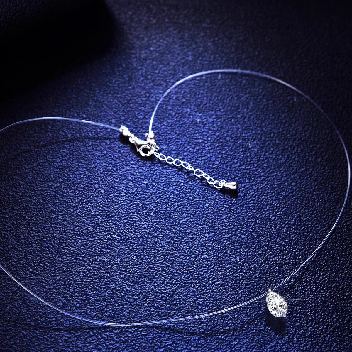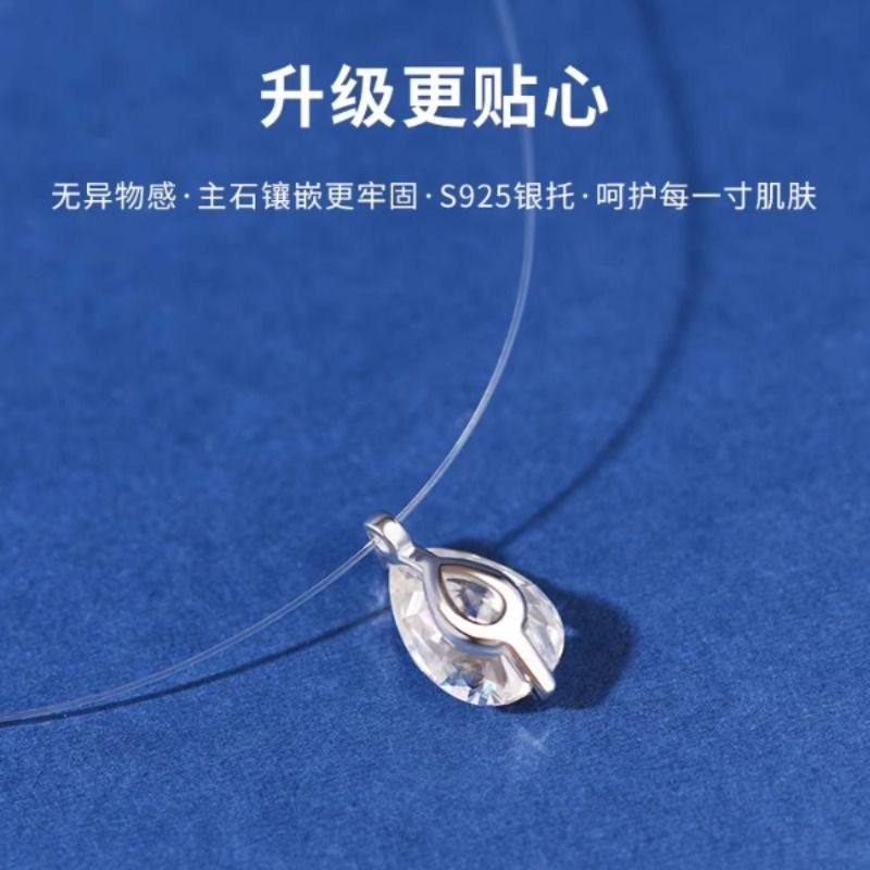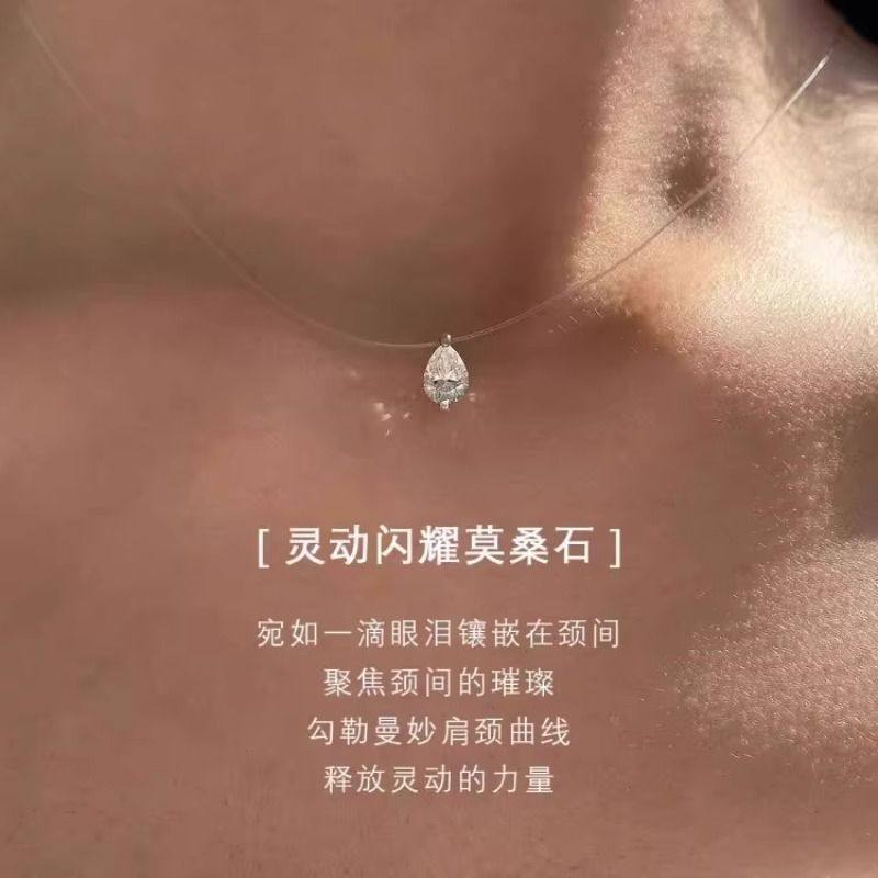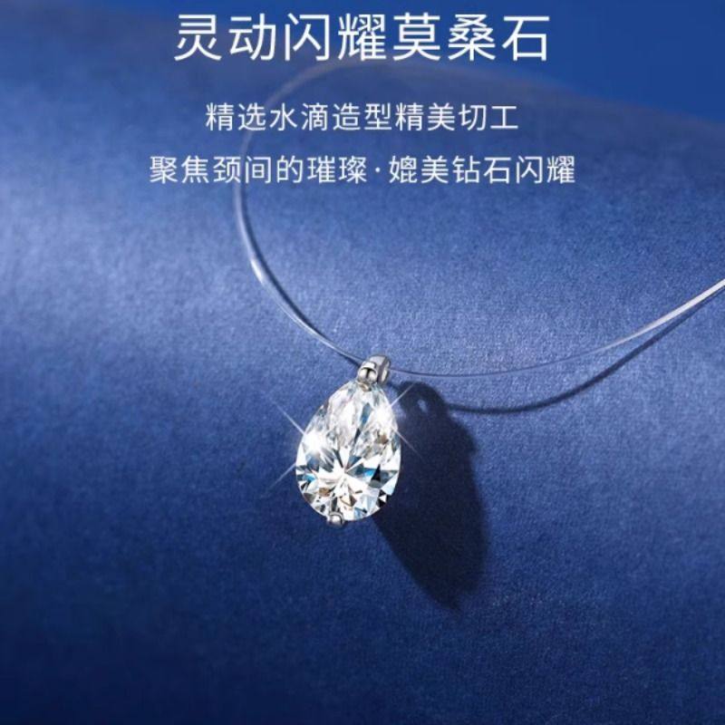 人鱼之泪水滴莫桑石项链925银吊坠单钻隐形鱼线新款礼物情人节