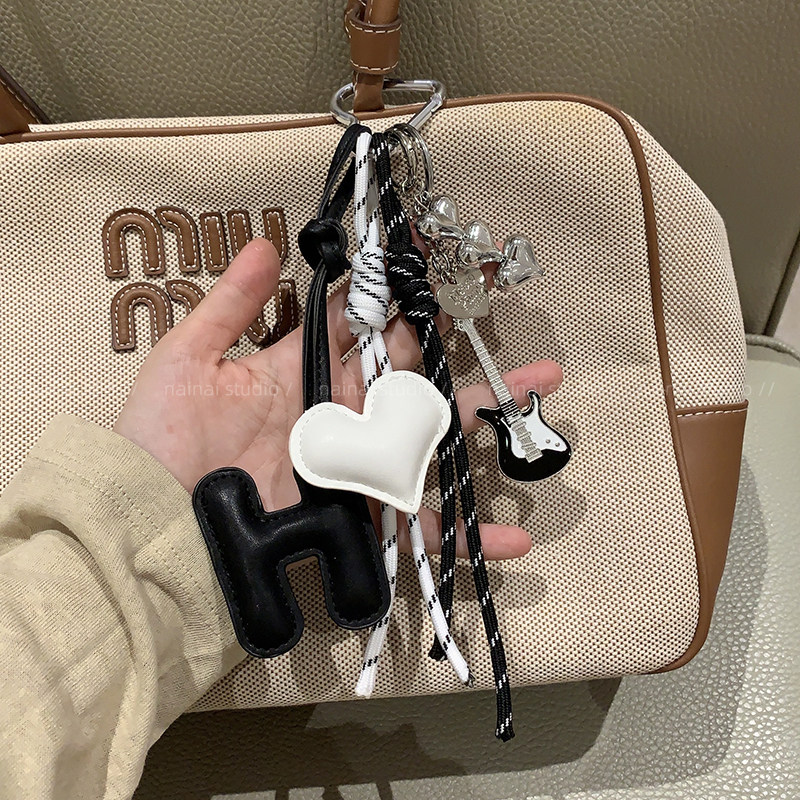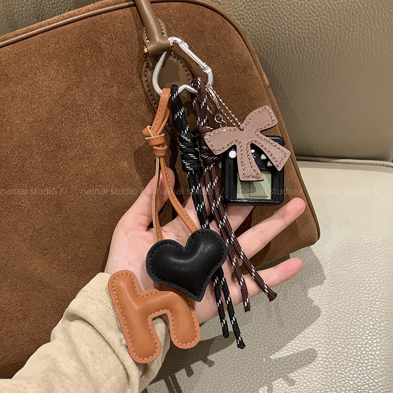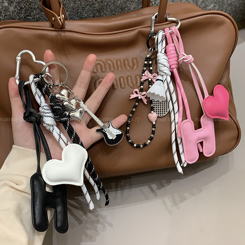 H字母挂件~皮革爱心miu系风韩国极繁包包挂饰登山绳钥匙扣配饰潮