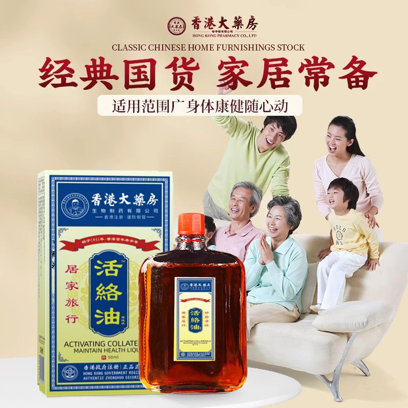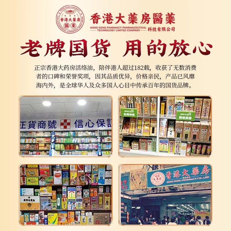 香港大药房活络油舒筋化瘀血红花油按摩消肿正品经络老牌