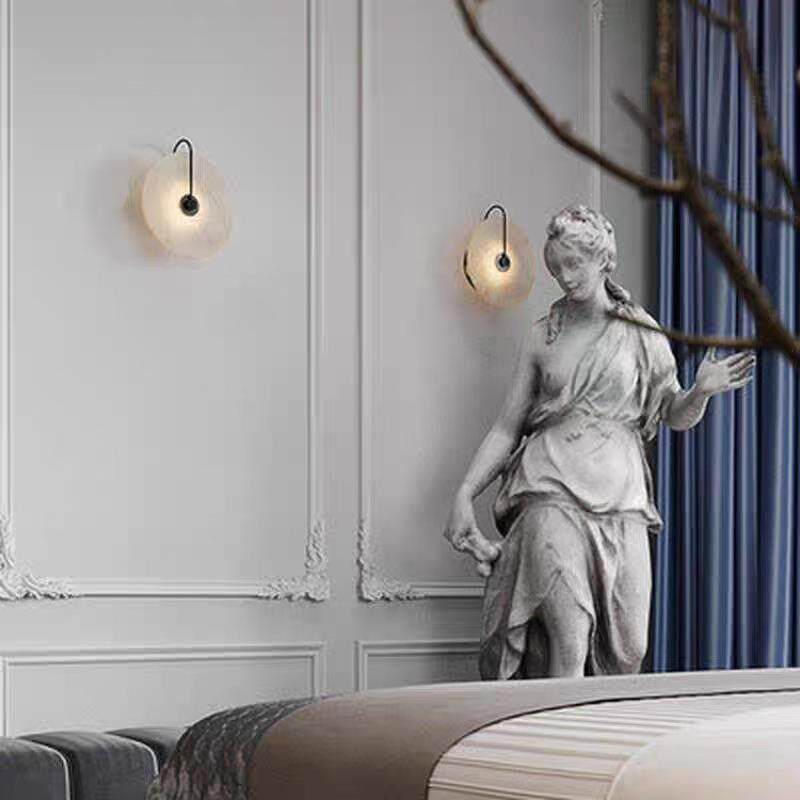 北欧后现代简约云石壁灯创意圆形餐厅客厅卧室床头书房大理石墙灯