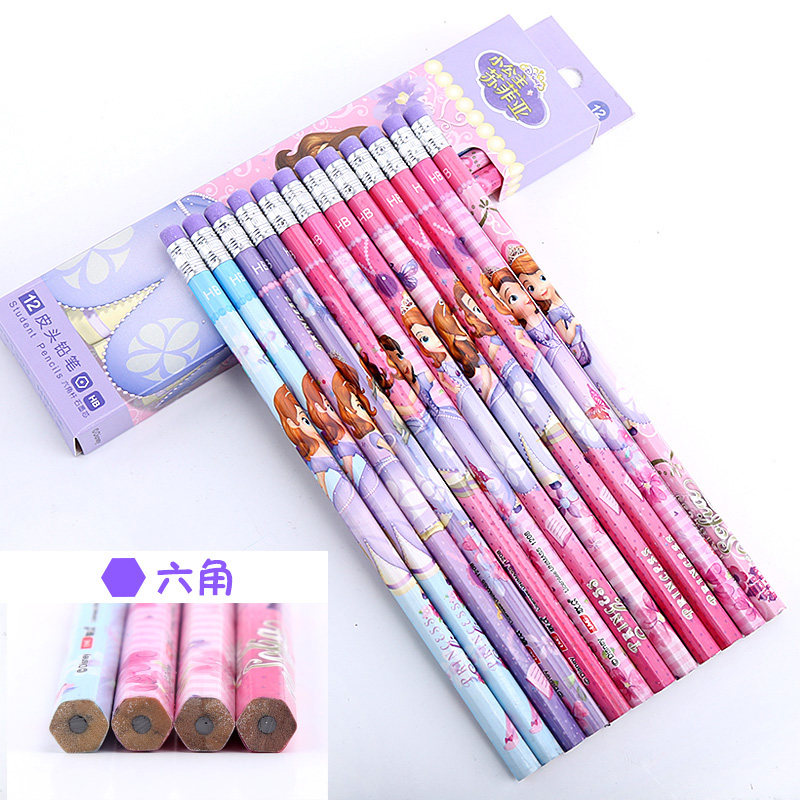 迪士尼苏菲亚公主卡通小学生写字铅笔儿童带皮头36支装HB铅笔