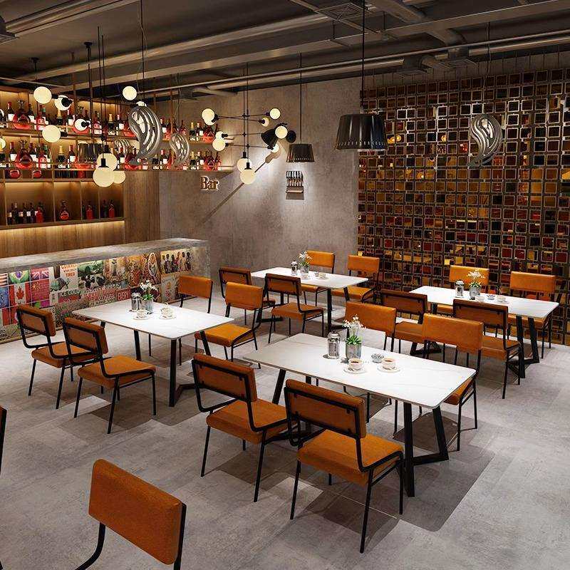 工业风夜宵烧烤店桌椅组合现代网红铁艺岩板酒吧餐厅商用餐饮家具