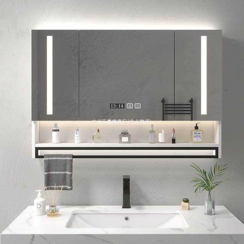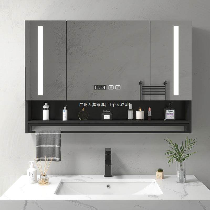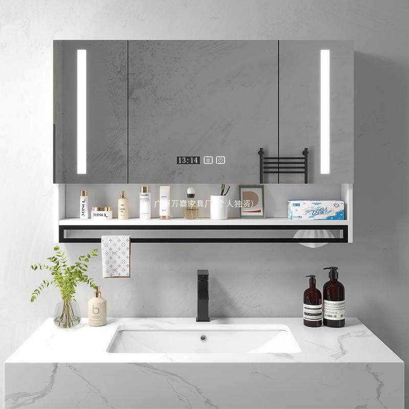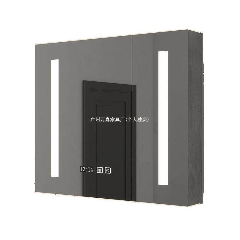 实木智能浴室镜柜带灯除雾卫生间浴室镜挂墙式洗手间镜子带置物架