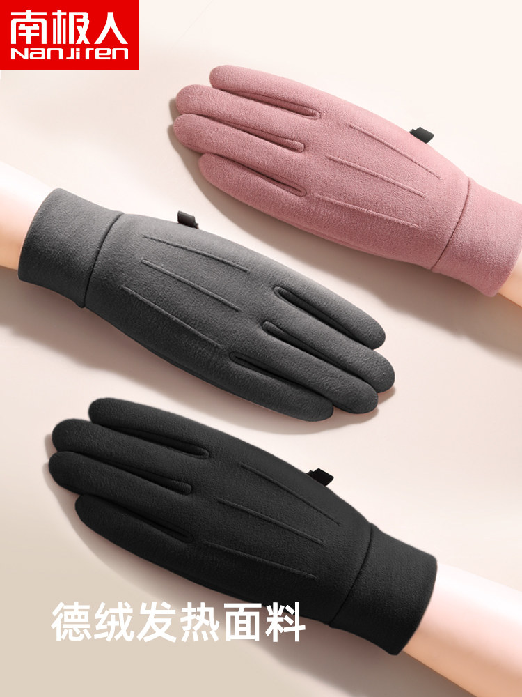 南极人发热全指手套男冬季骑行防风加绒保暖触屏女户外开车厚H