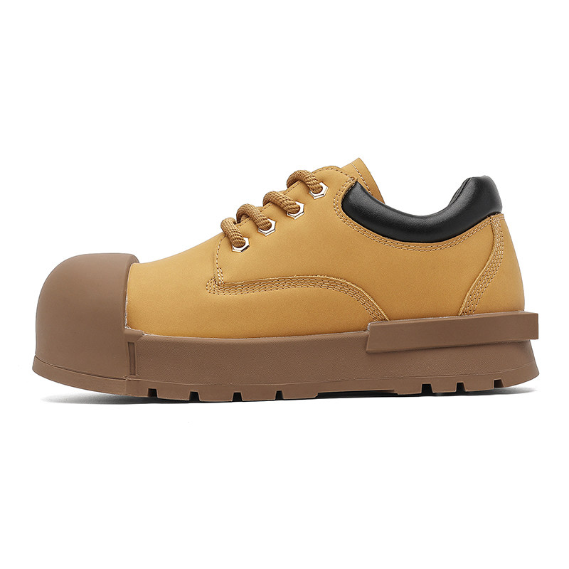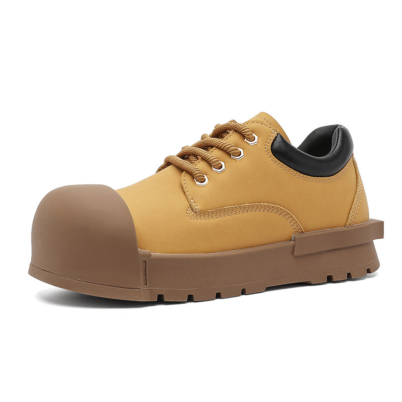 MRA棕色德比鞋男款2025新款秋季低帮大黄靴厚底增高大头工装皮鞋