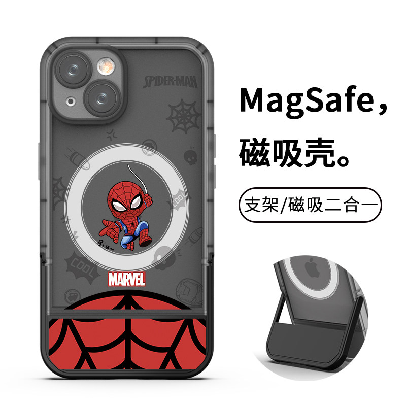 适用于苹果15plus磁吸16e支架手机壳12/11支点式xs全包xr漫威magsafe蜘蛛侠14max个性17air卡通13pro防摔