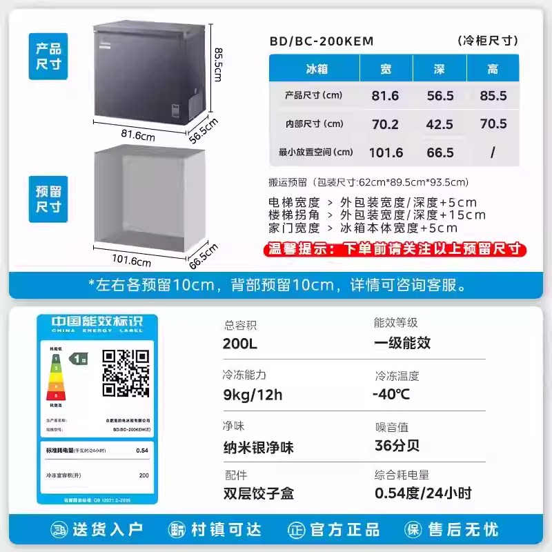 美的200升冰柜-40℃超低温冷冻冷藏家用餐厅囤货小型冷柜一级冰箱