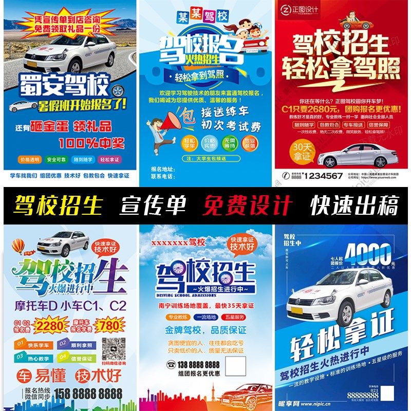 报名驾校招生宣传单易拉宝广告海报面彩页展架考驾照广告牌