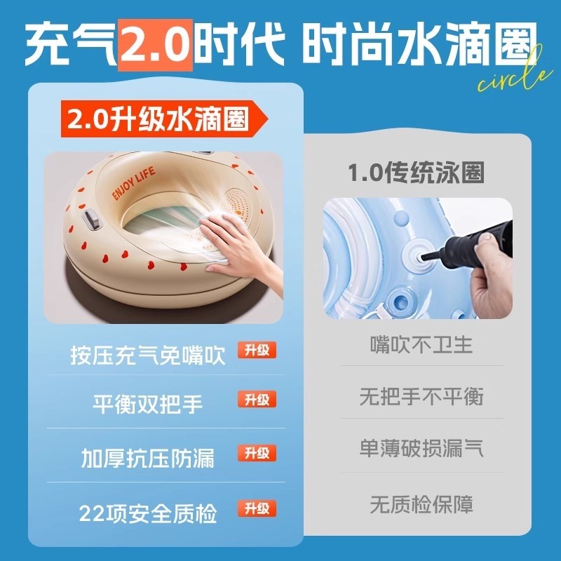 游泳圈成人男童按压充气泳圈水泡圈防侧翻加厚女童儿童救生圈腋下