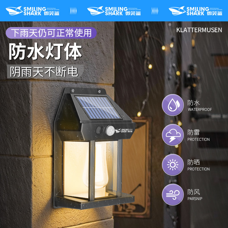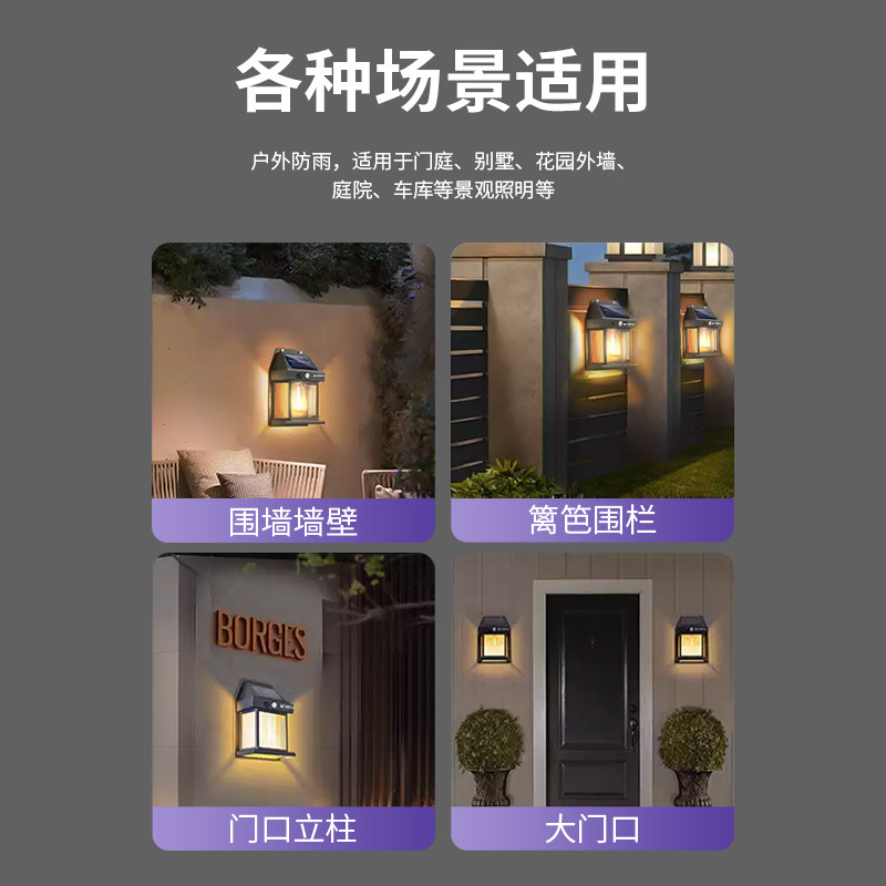 太阳能户外壁灯氛围户外花园庭院暖光灯人体感应阳台灯LED照明灯