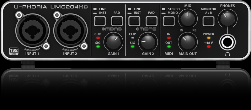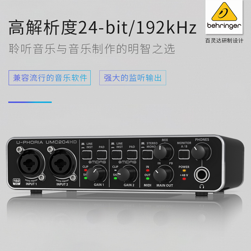 BEHRINGER/百灵达UMC204HD 录音直播乐队编曲助眠专业USB外置声卡