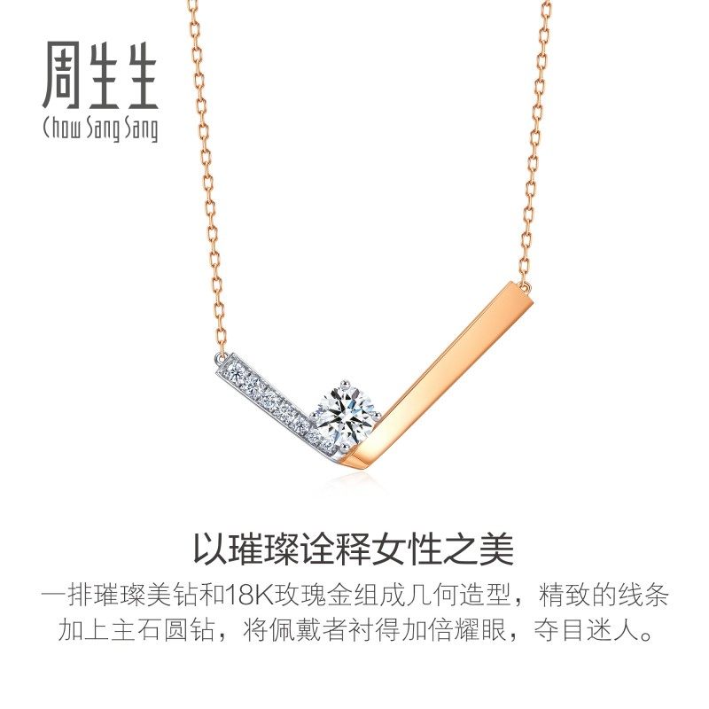 周生生珠宝钻之颂永恒之颂直角肩V型丝带钻石项链18k金套链93392N