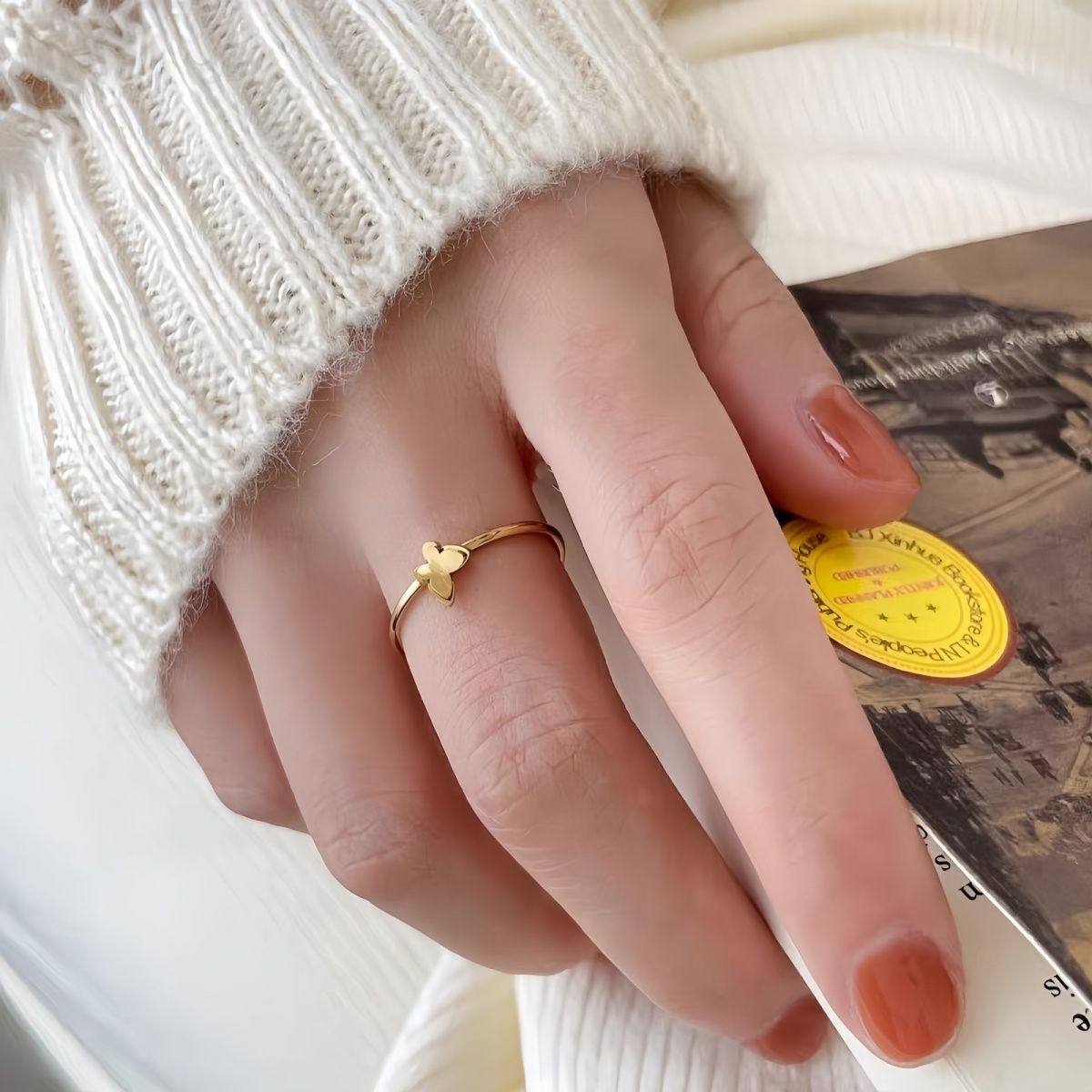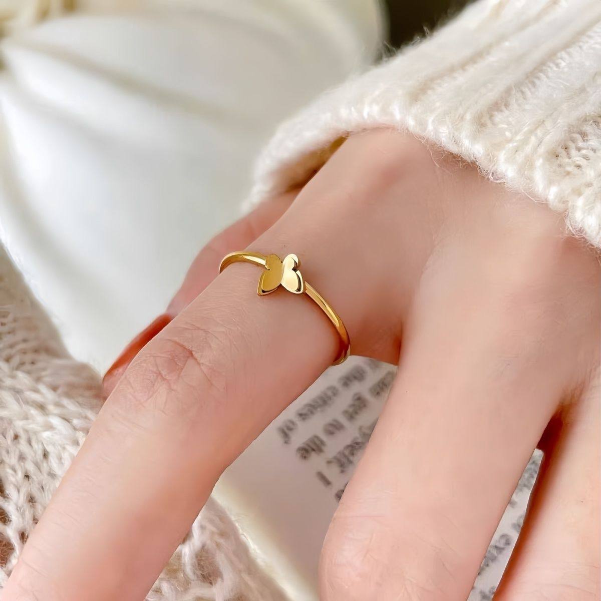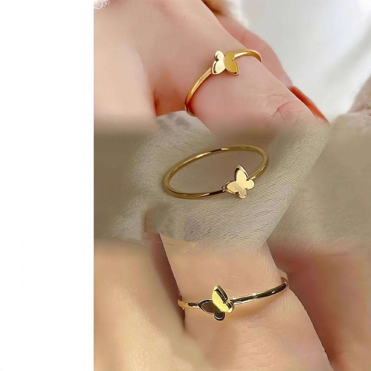 迷你双层小蝴蝶戒指女2025年新款轻奢简约素圈简约百搭可爱指环