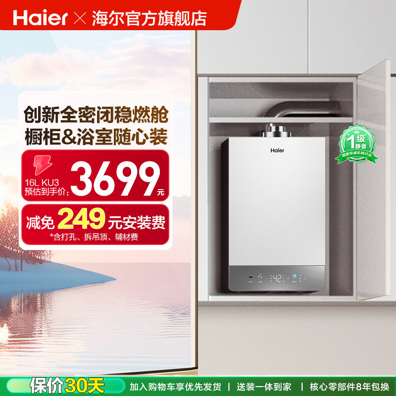 海尔燃气热水器全密闭稳燃舱家用16升平衡式伺服静音官方KU3白巧