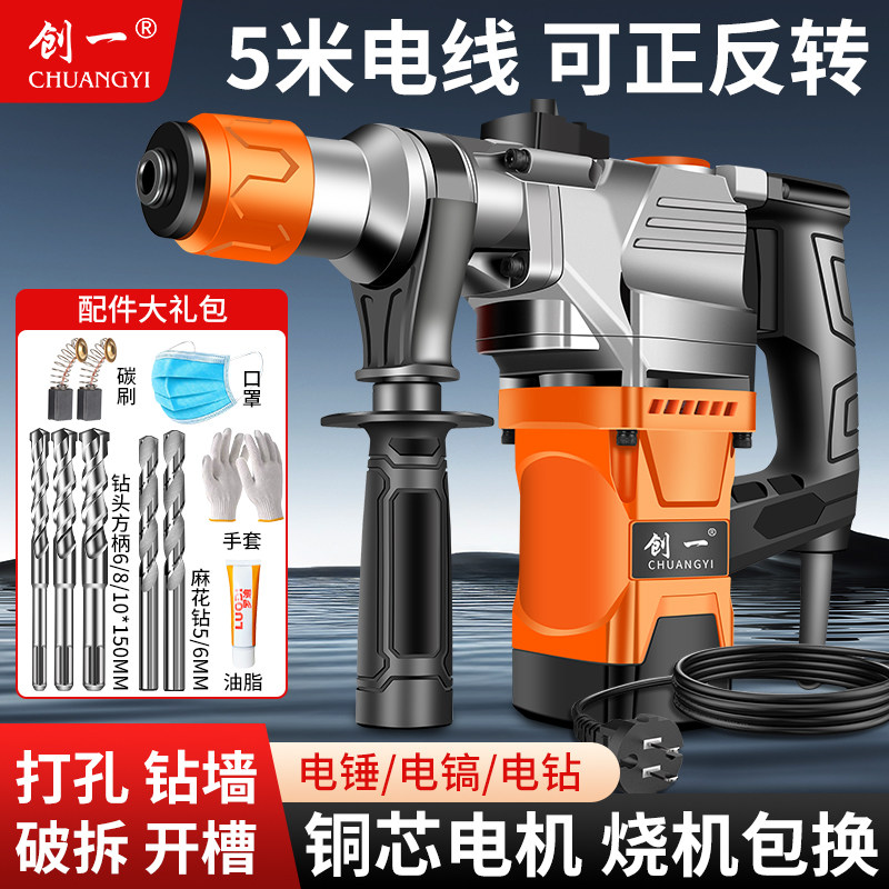 创一工地家用电锤电镐电钻多功能冲击钻工业级大功率电捶混凝土