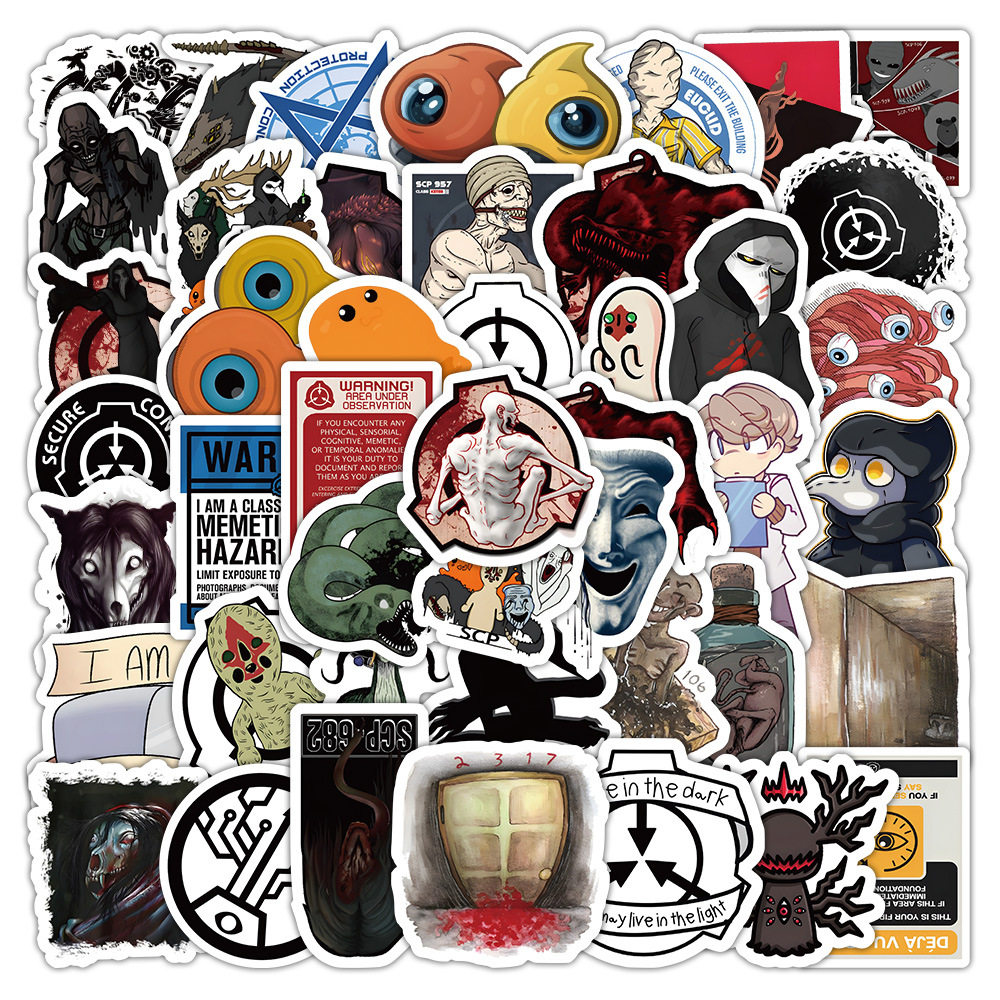60张创意SCP基金会B款涂鸦贴纸可装饰手机壳手账本笔记本防水贴画