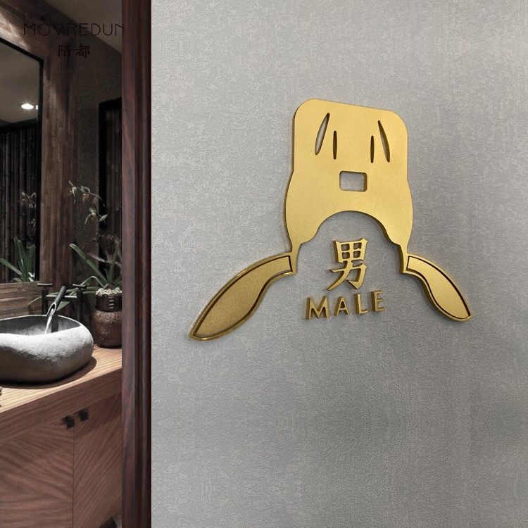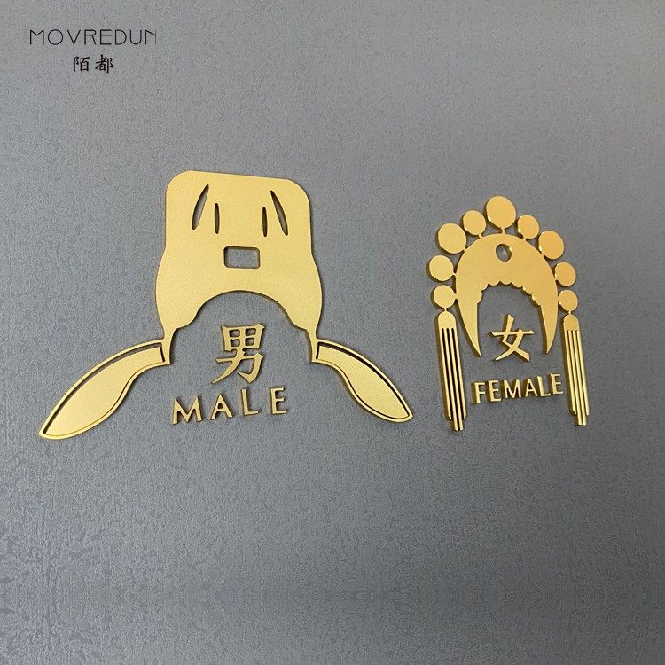中式创意男女洗手间门牌标识牌厕所牌卫生间提示牌金属铝3D立体字标牌标识母婴室保洁室储藏间门牌定制设计