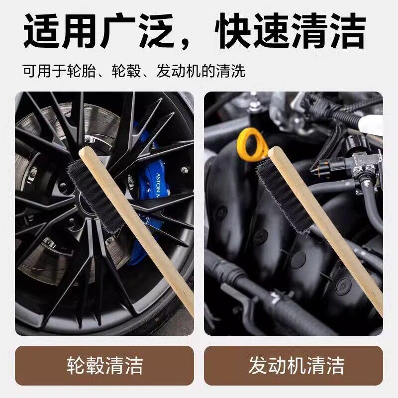 德国工艺汽车清洗工具发动机刷钢圈轮毂清洁猪鬓毛多功能长竹柄刷