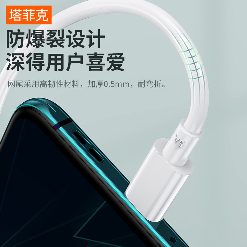Typec闪充数据线塔菲克适用OPPO超级充电线器reno5闪充65W安卓r15口67wfind专用6tpc8pro手机80w快充30w加长