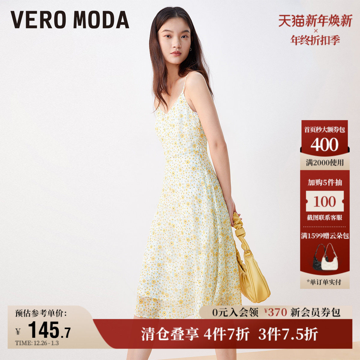 Vero Moda奥莱连衣裙子秋季甜美碎花纹理浪漫度假吊带裙女优雅