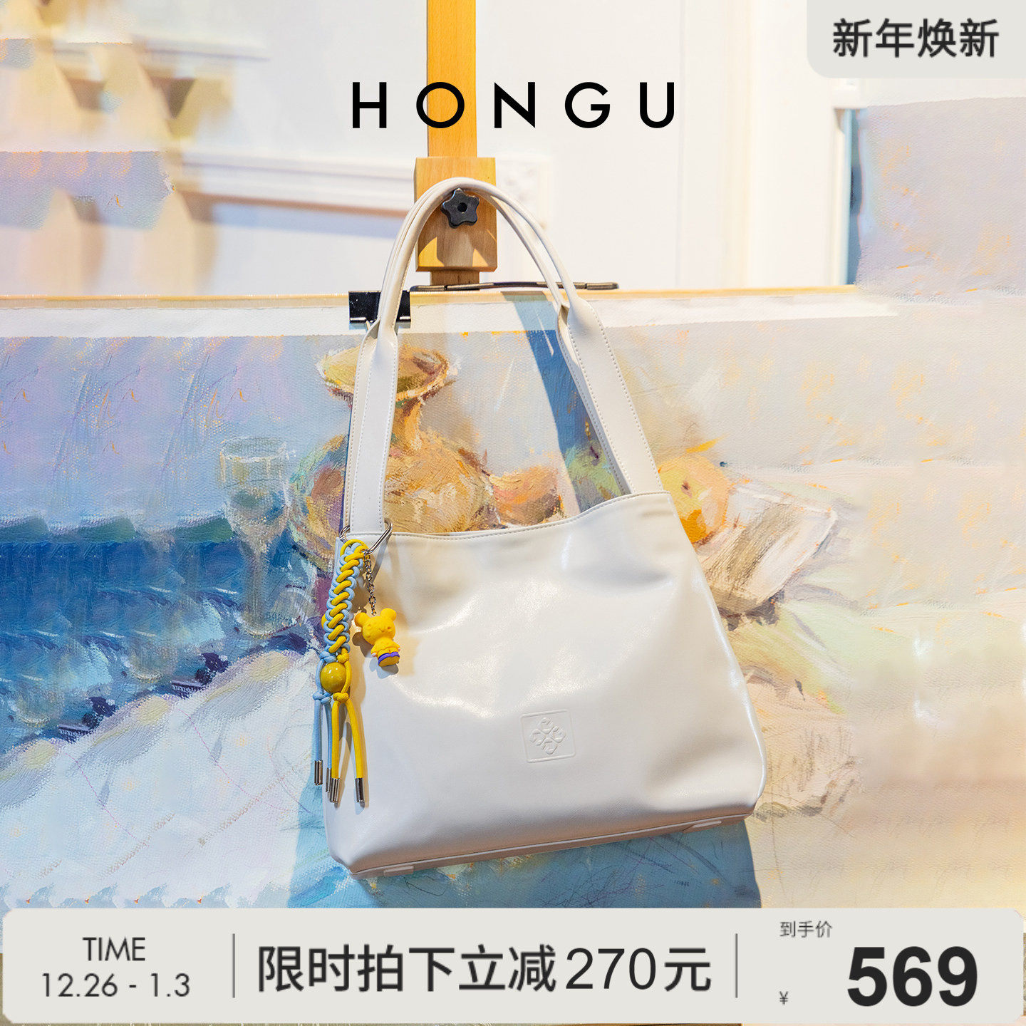 红谷包包2025新款质感真皮单肩腋下包夏季时尚大容量托特包女士包