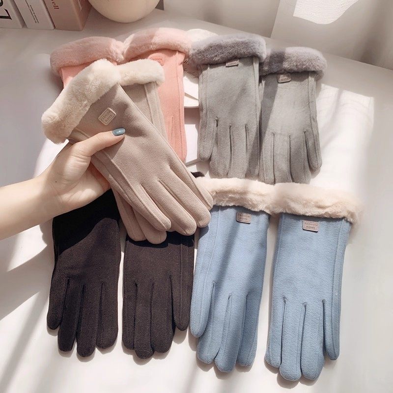 手套冬天女加绒加厚保暖可爱麂皮绒女士骑行防寒骑车防风触屏冬季