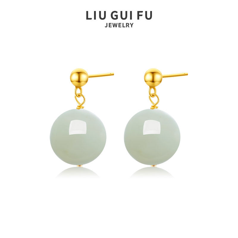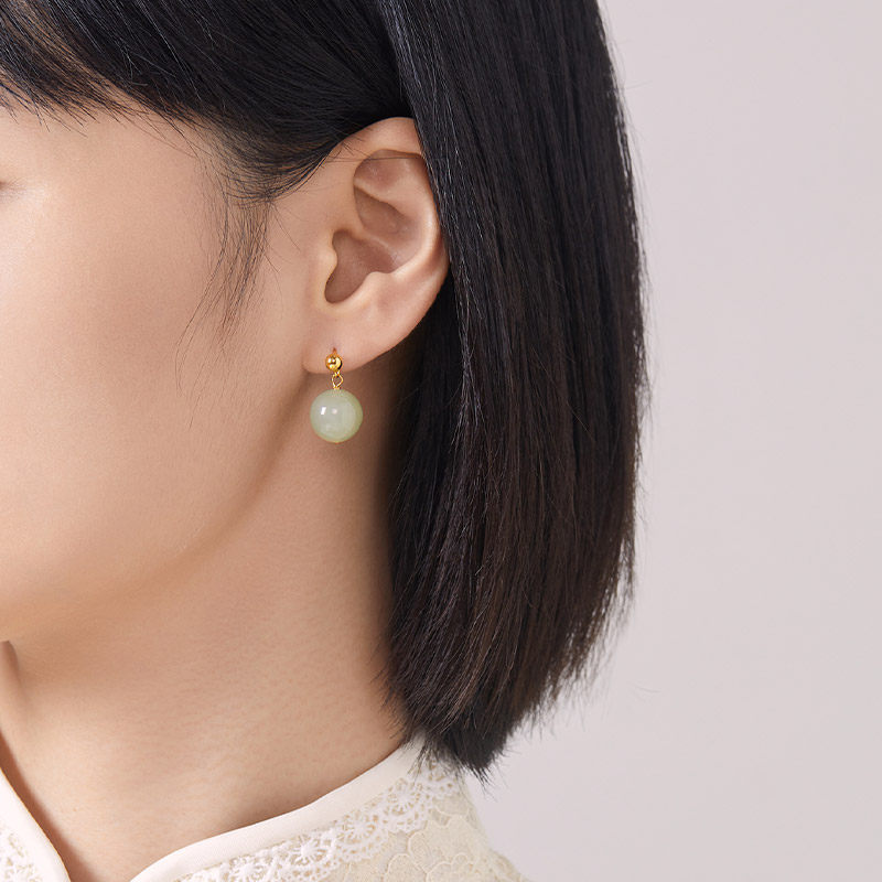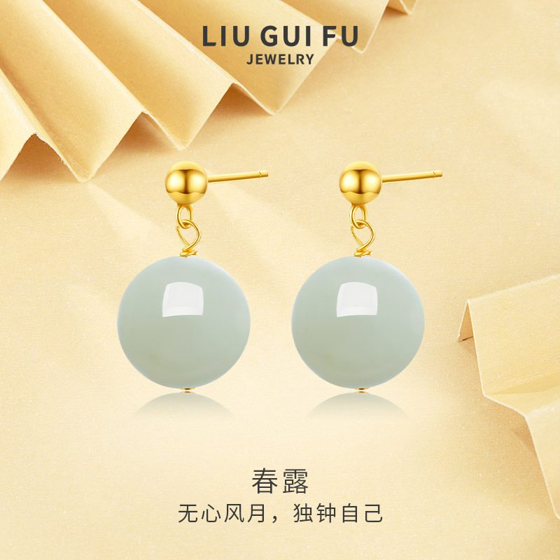 六桂福珠宝和田玉石耳钉女S925纯银新中式首饰新款生日礼物送女友