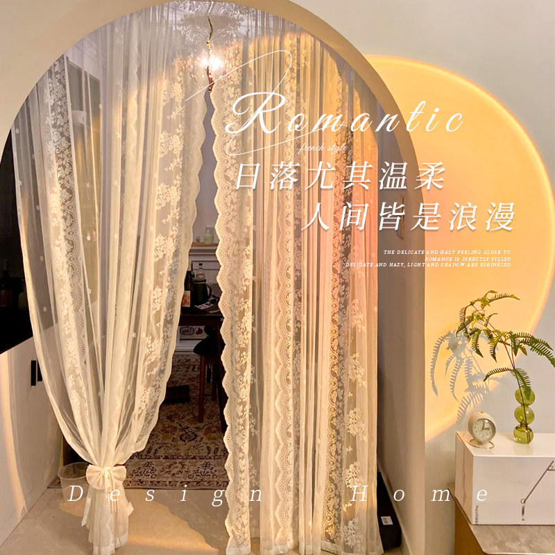 纱帘免打孔安装法式蕾丝帘卧室门帘2025新款窗帘女孩房帘防紫外线