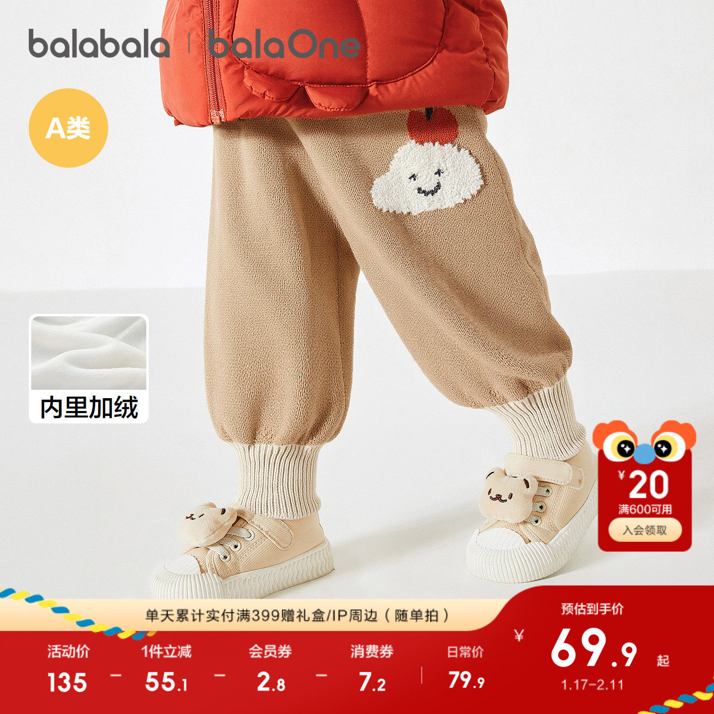 巴拉巴拉balaOne宝宝打底裤加绒保暖长裤冬女童男童裤子2025新款