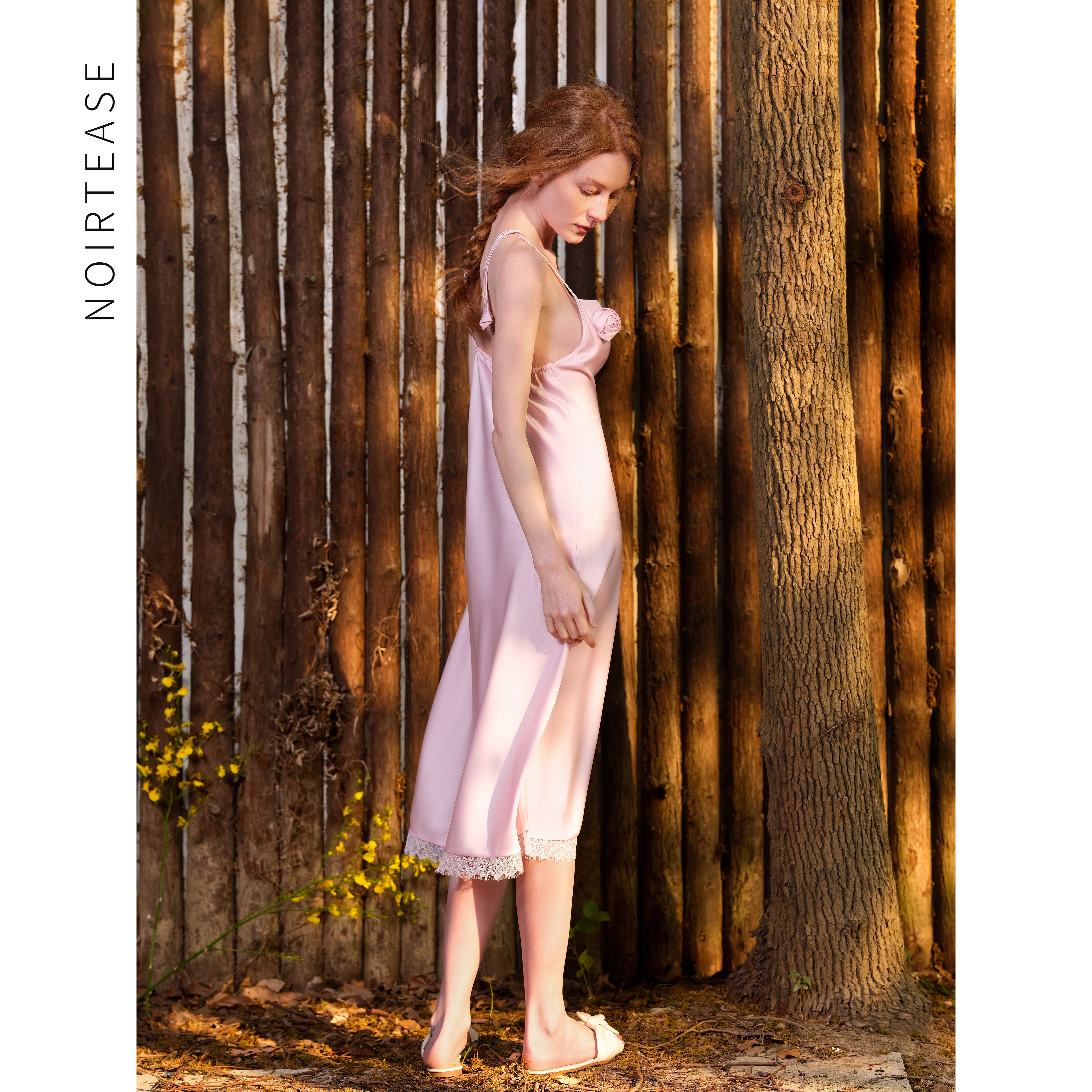 NoirTease春夏薄款丝质吊带睡衣蕾丝家居睡裙女夏长款度假裙外穿