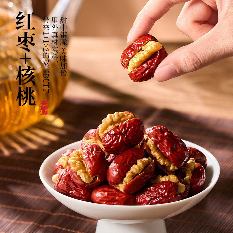 好想你红枣夹核桃新疆特产灰枣和田大枣枣仁派礼盒零食代餐黑金枣