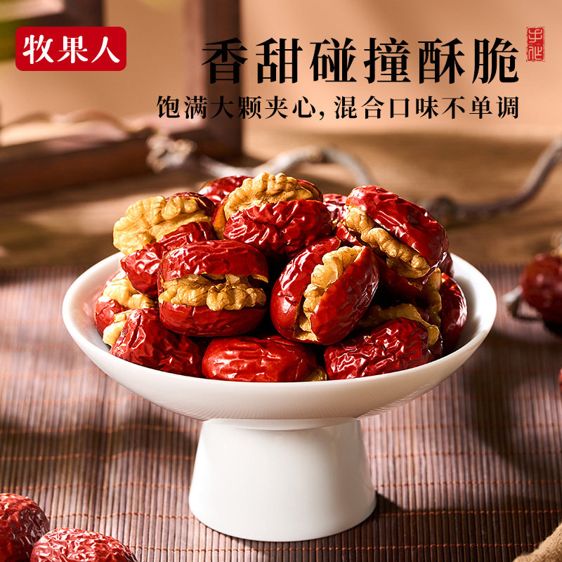 牧果人红枣夹核桃仁150g新疆特产夹心枣孕妇儿童健康营养零食花生