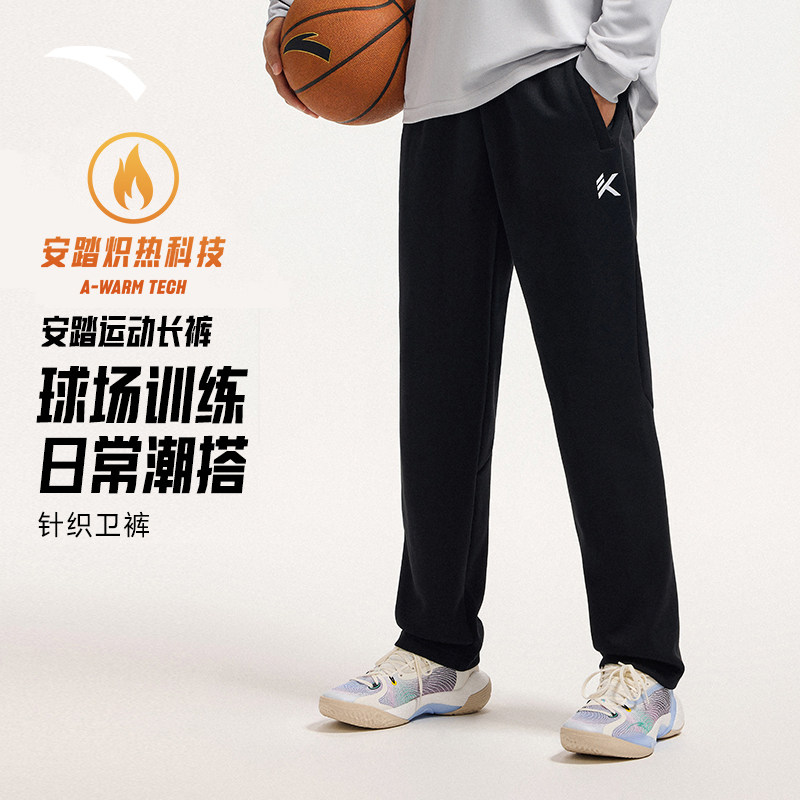 安踏KT运动长裤男裤冬季新款直筒裤黑色休闲卫裤宽松训练跑步裤子