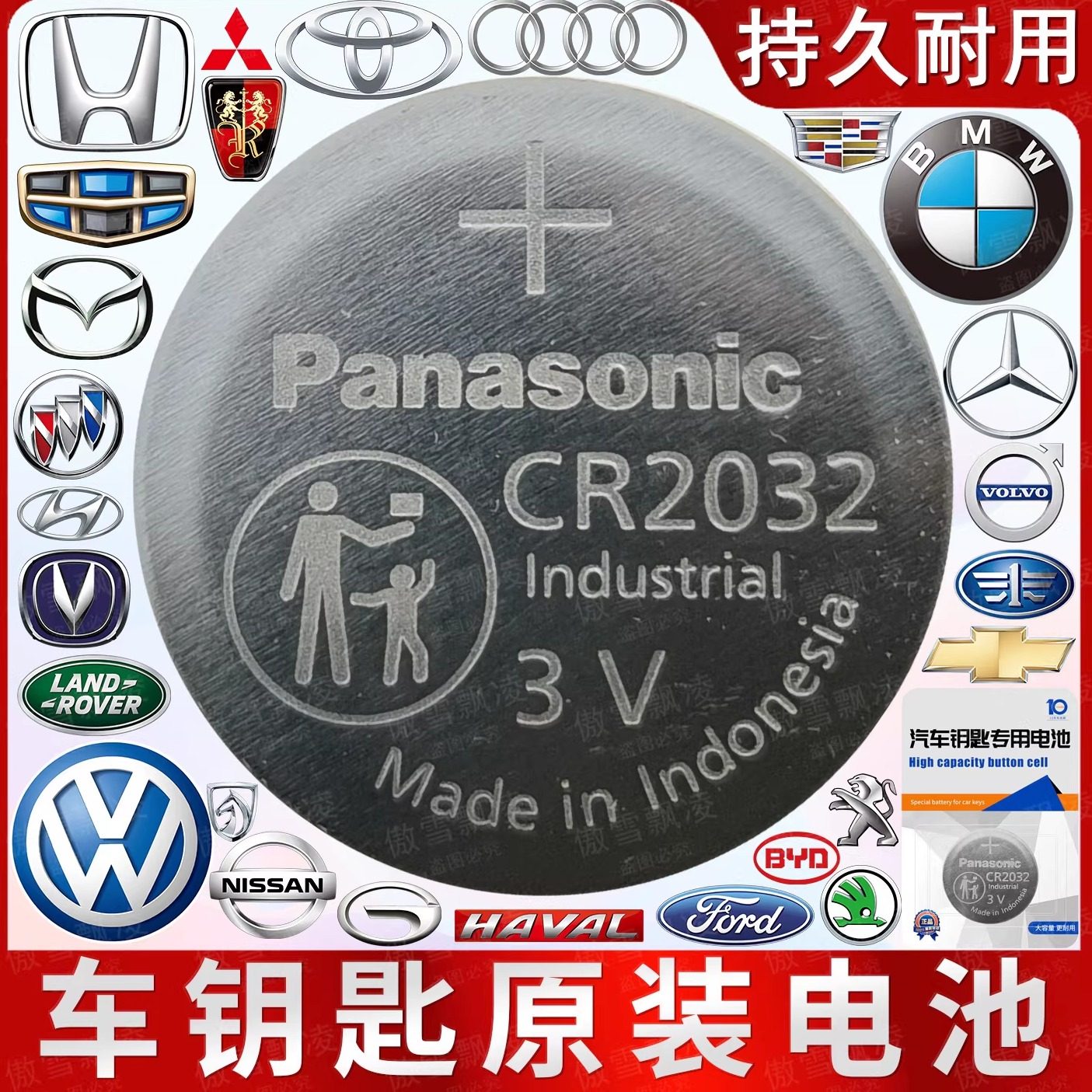 原装进口松下CR2032/CR2450 /CR1632/CR20253v纽扣电池汽车钥匙遥控器型锂电池电子适用于奥迪大众奔驰宝马等