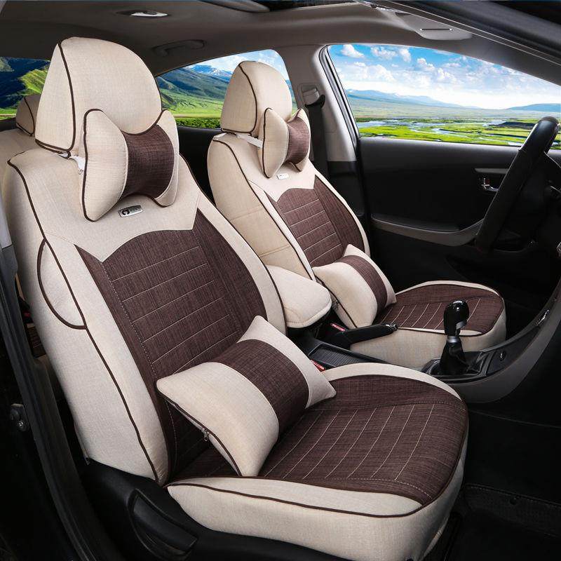 新款亚布艺汽车四坐垫通用全包围586885座汽季车座麻套夏冬季座垫