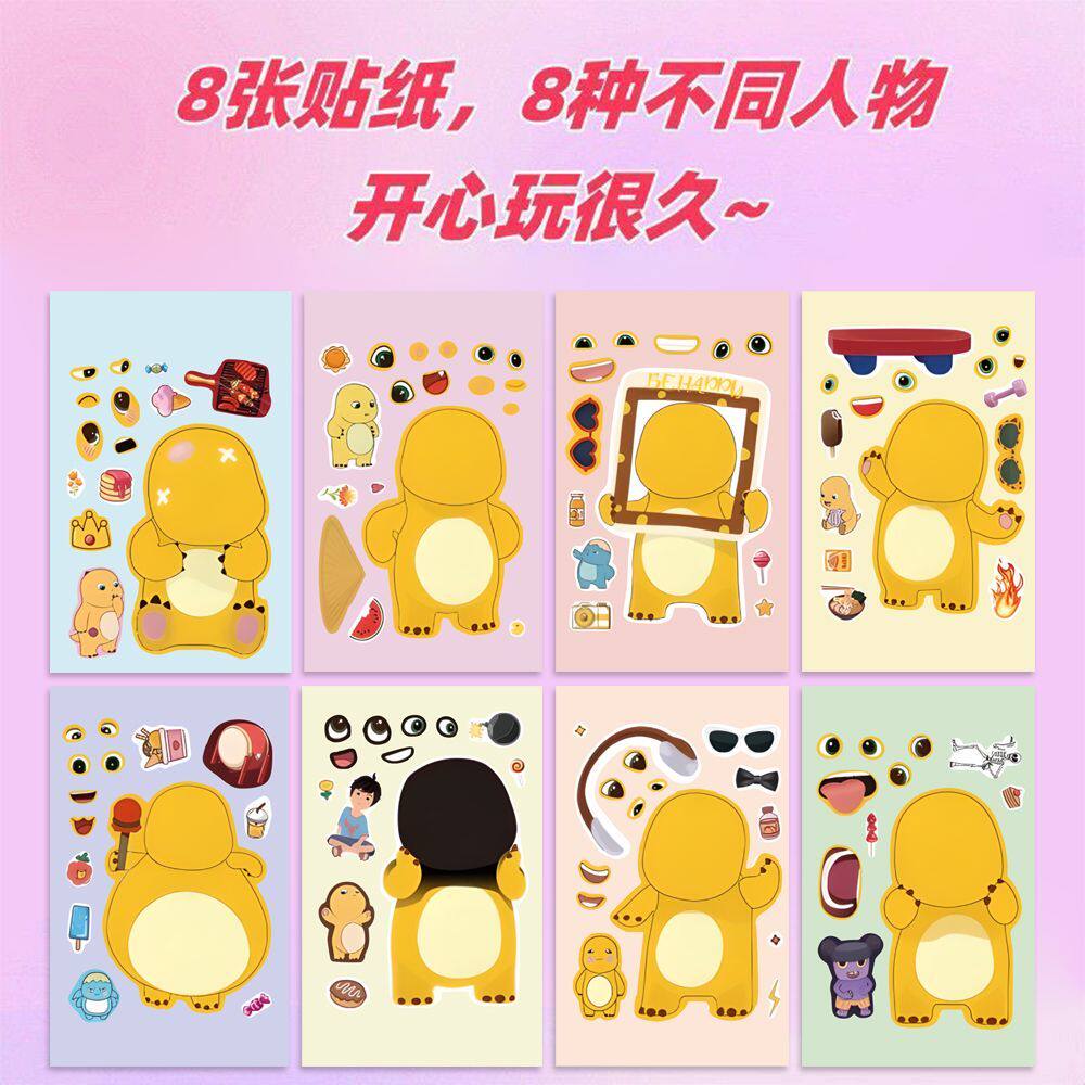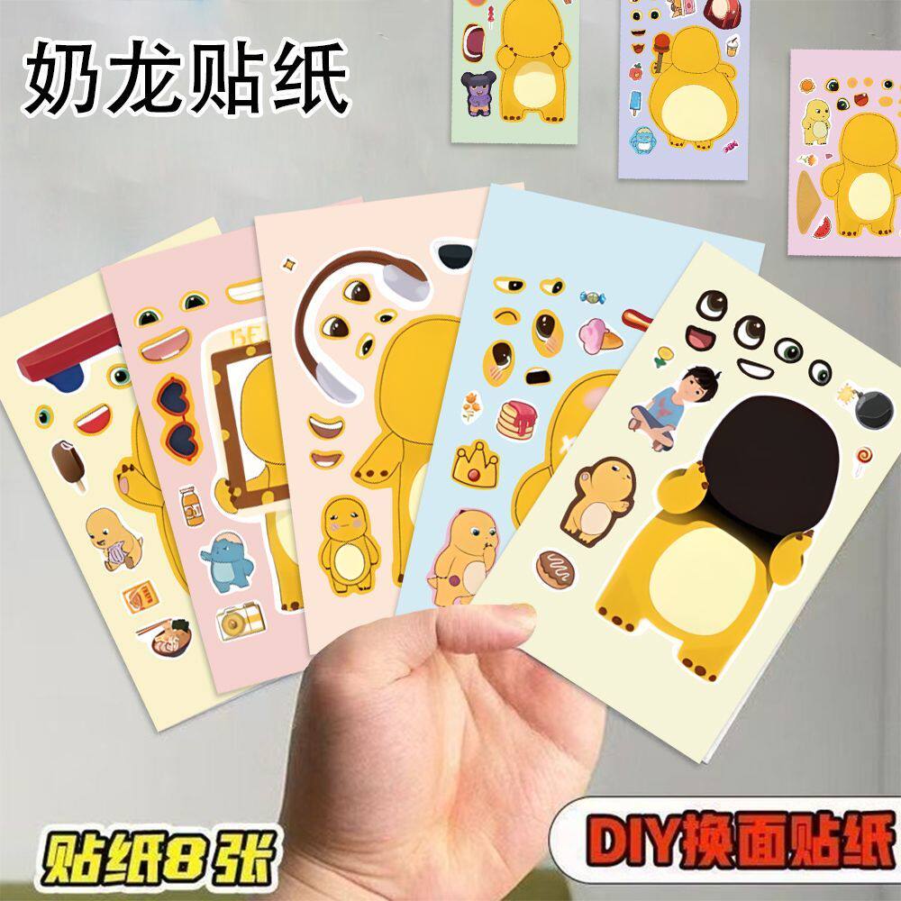 卡通可爱奶龙换装贴纸儿童益智娱乐换脸贴画创意装饰素材奖励贴