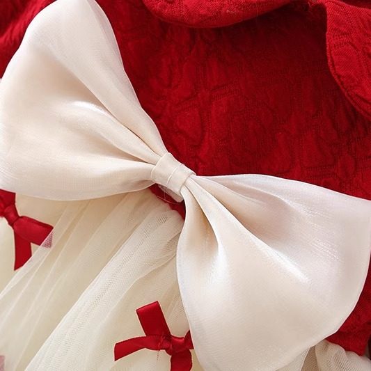[抗菌远红外]女童连衣裙宝宝高领加绒蓬蓬网纱裙子儿童红色公主裙