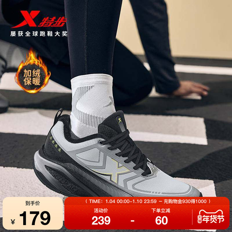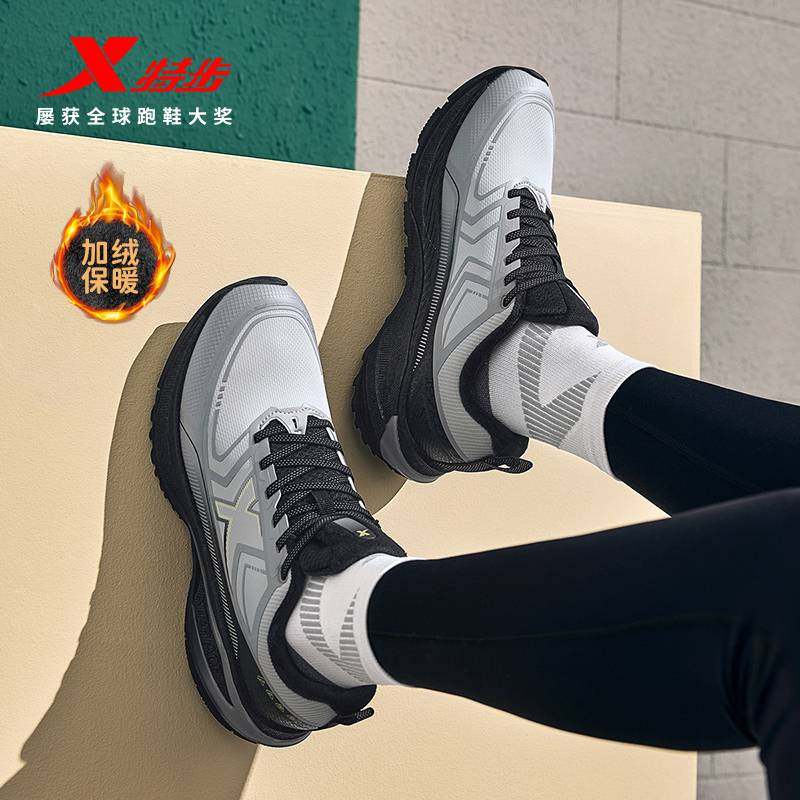 特步轻悦3丨减震轻便跑步鞋男鞋冬季新款皮面加绒运动鞋软底跑鞋