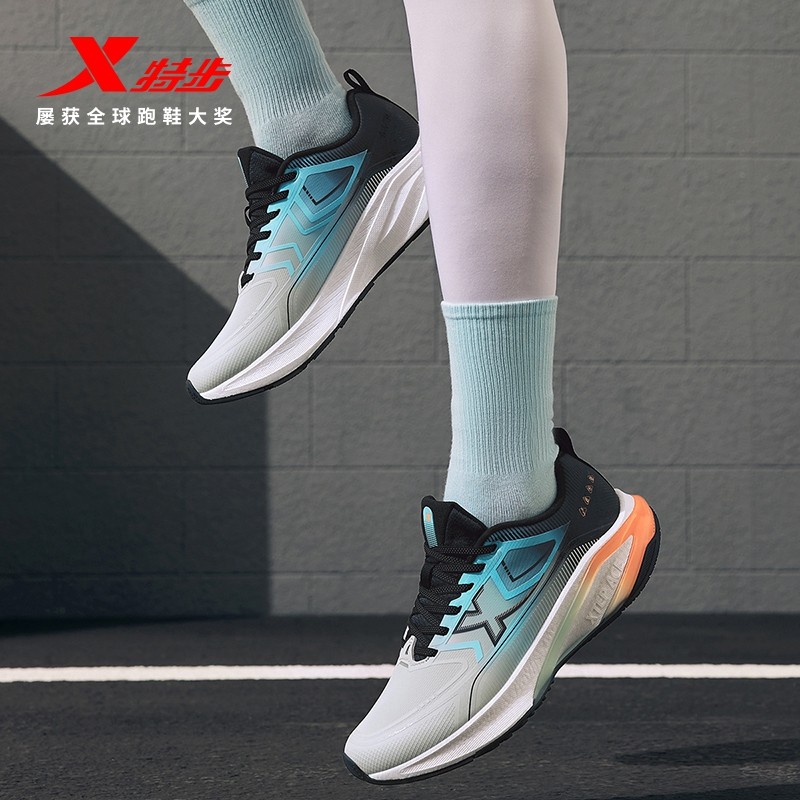 特步运动鞋女鞋冬季新款网面轻便皮面防泼水软底妈妈减震跑步鞋男
