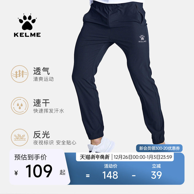 KELME卡尔美2025年夏季运动裤男束脚速干梭织长裤跑步足球训练裤