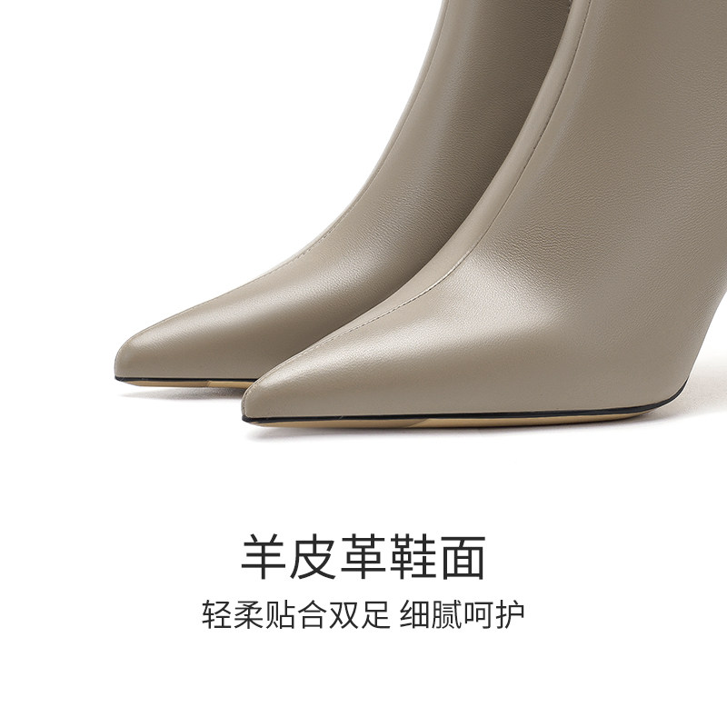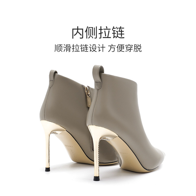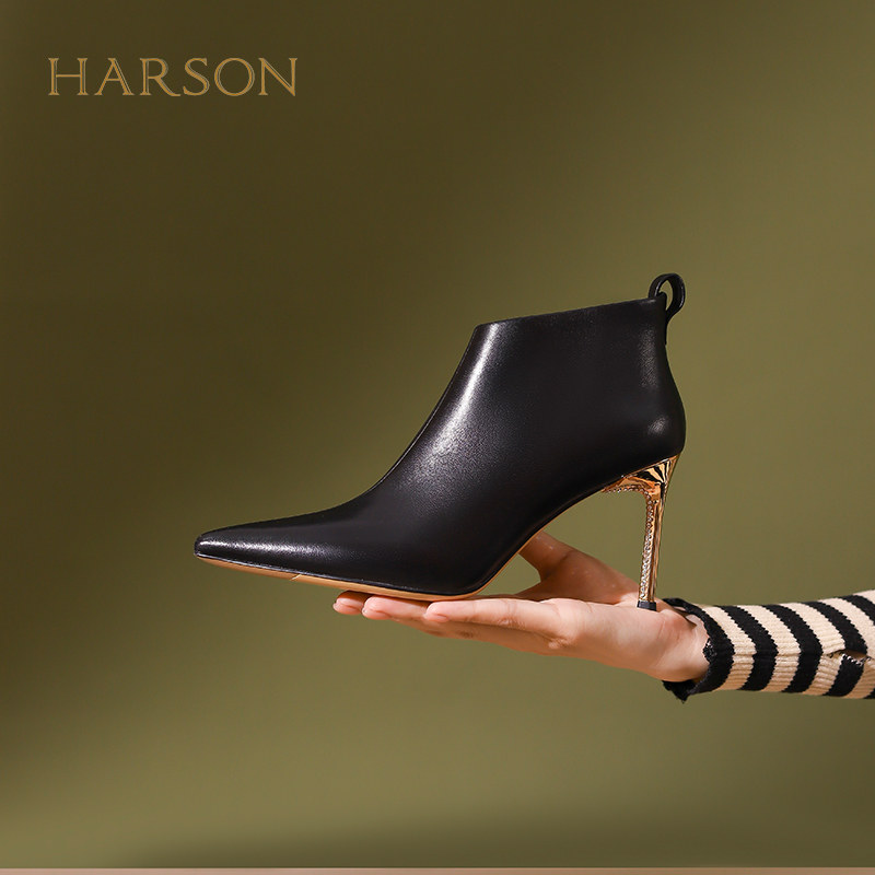 哈森秋季尖头细跟踝靴女冬新款羊皮时装靴短靴高跟单靴HWA230150