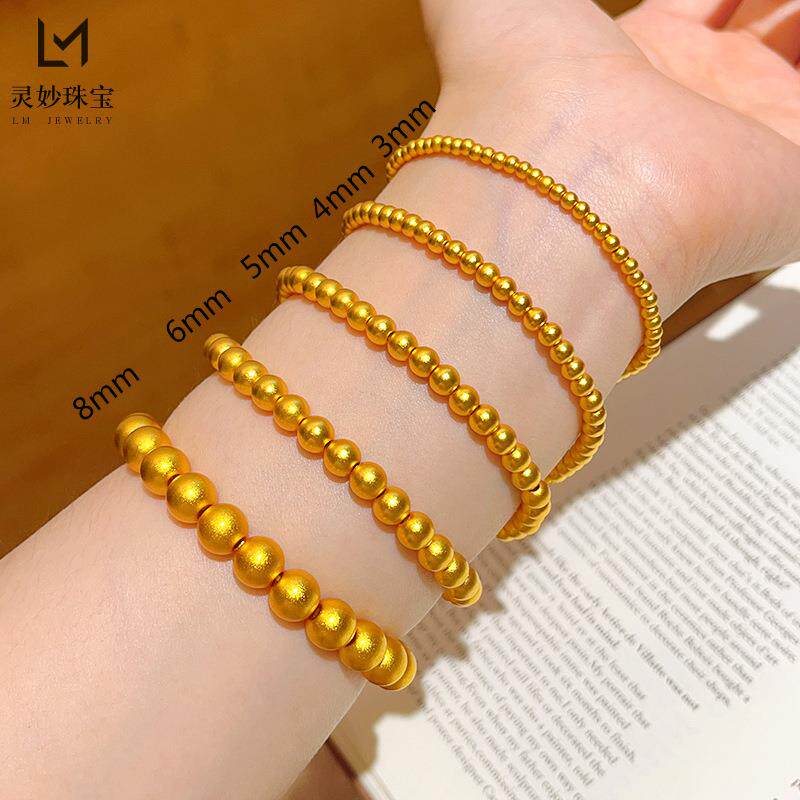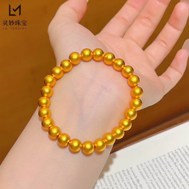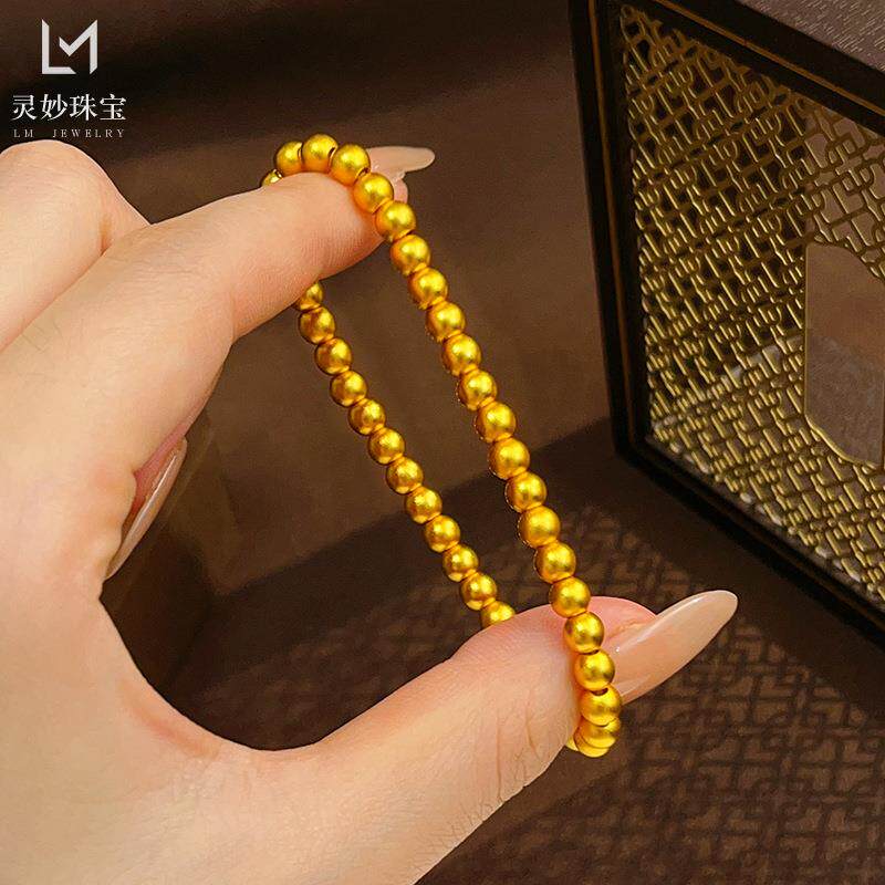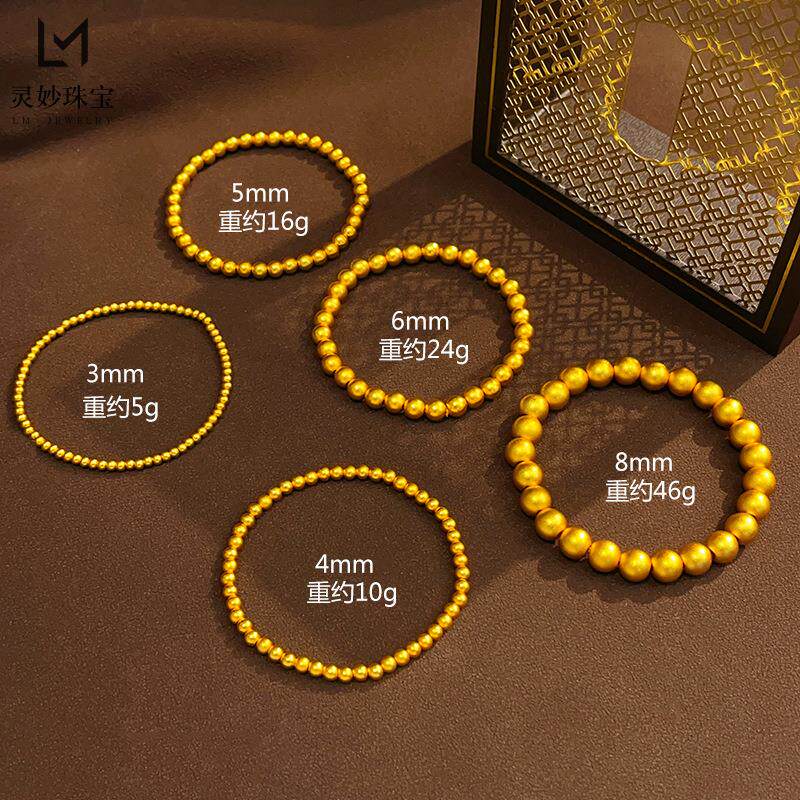 新中式沙金古法圆珠串珠手链素圈佛珠转运珠可叠戴手串复古国风女