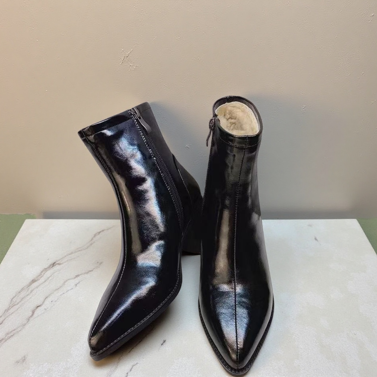 2025冬季新款加绒加厚短靴女粗跟保暖尖头马丁靴雪地靴棉鞋中跟