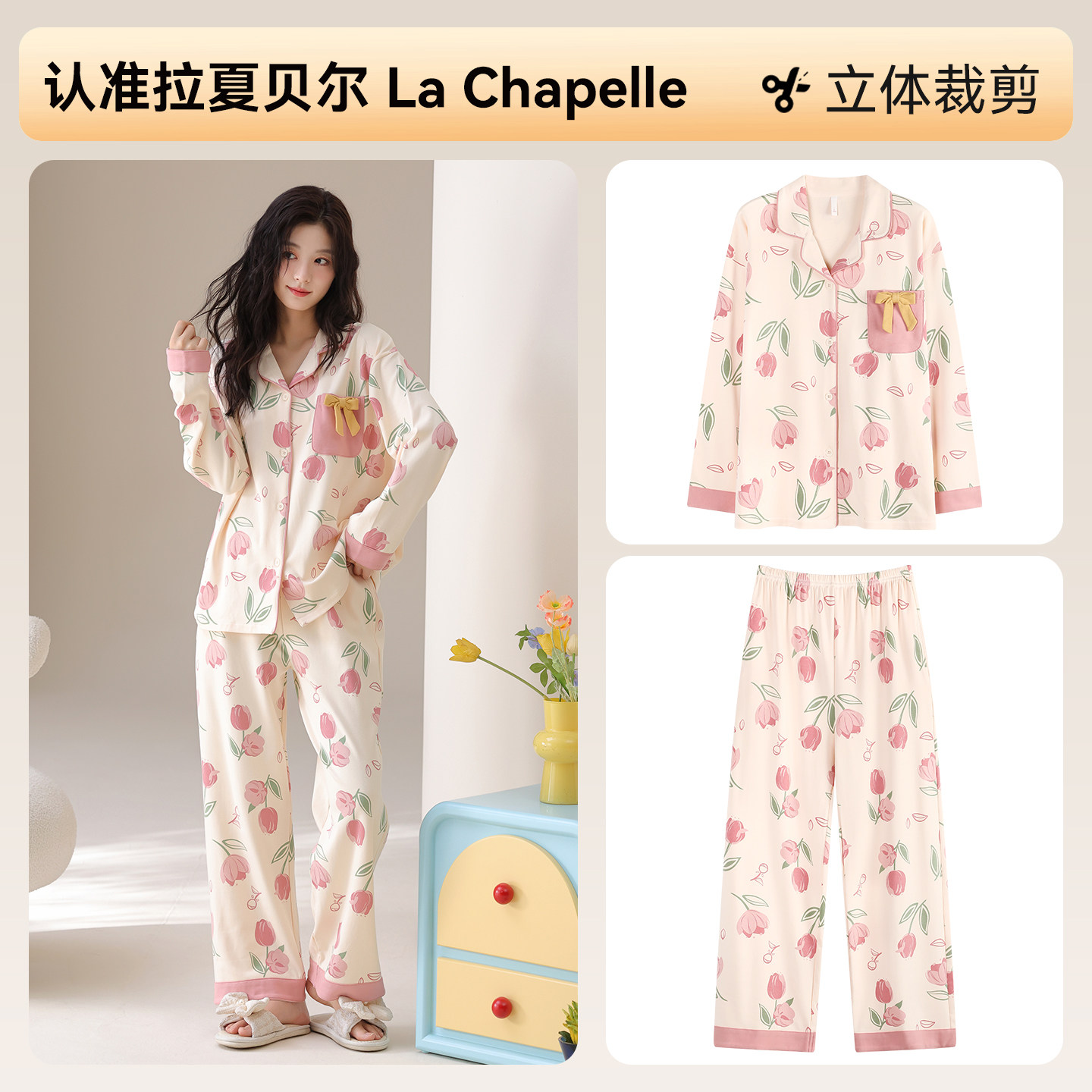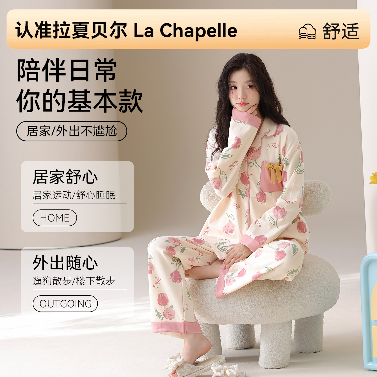 拉夏贝尔纯棉睡衣女款高级感2026新款春季柔软亲肤女士家居服套装