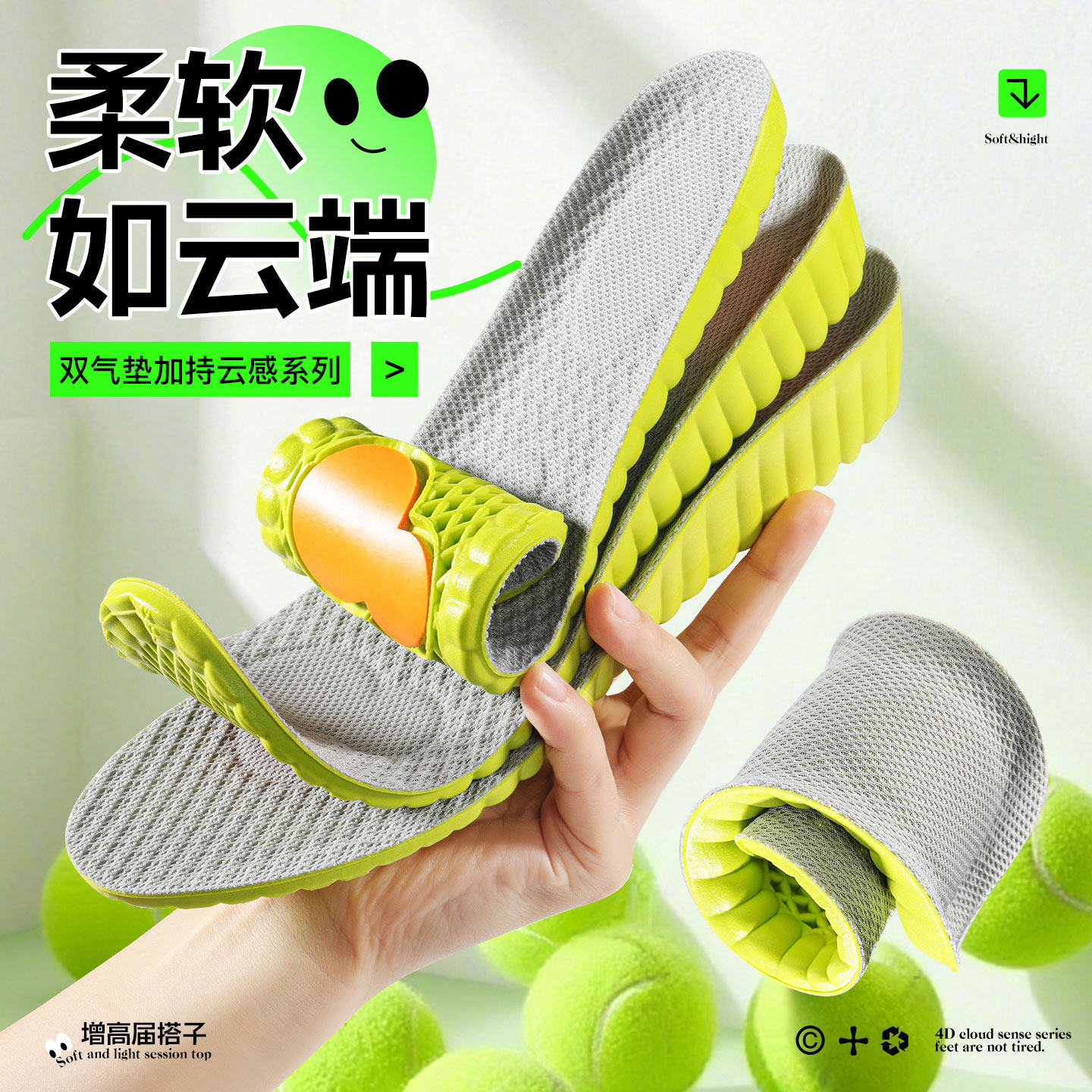 踩屎感鞋垫久站不累软底舒适运动减震气垫男女士吸汗防臭透气军训
