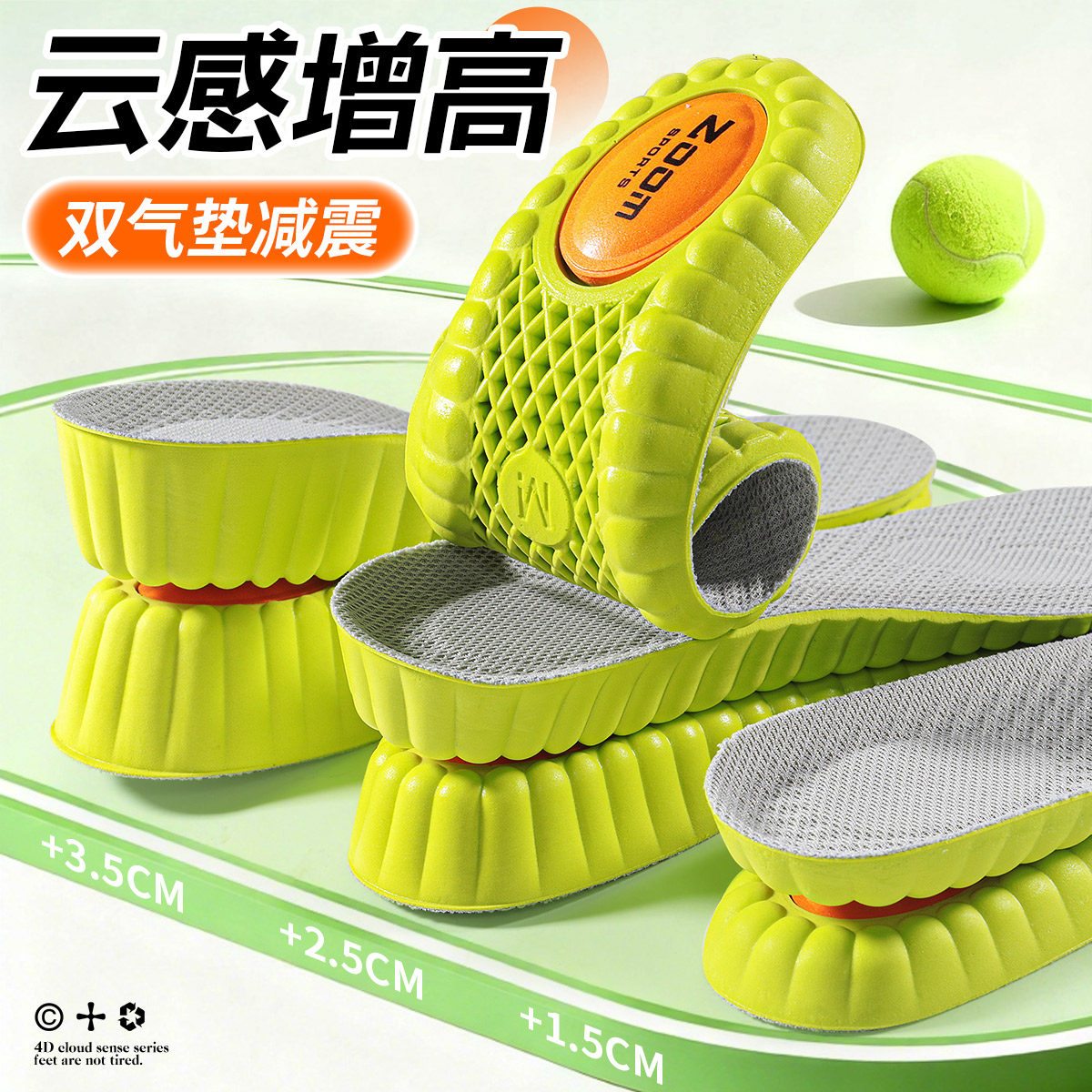 气垫增高鞋垫男女运动减震不累脚隐形内增高垫全掌不塌陷透气吸汗